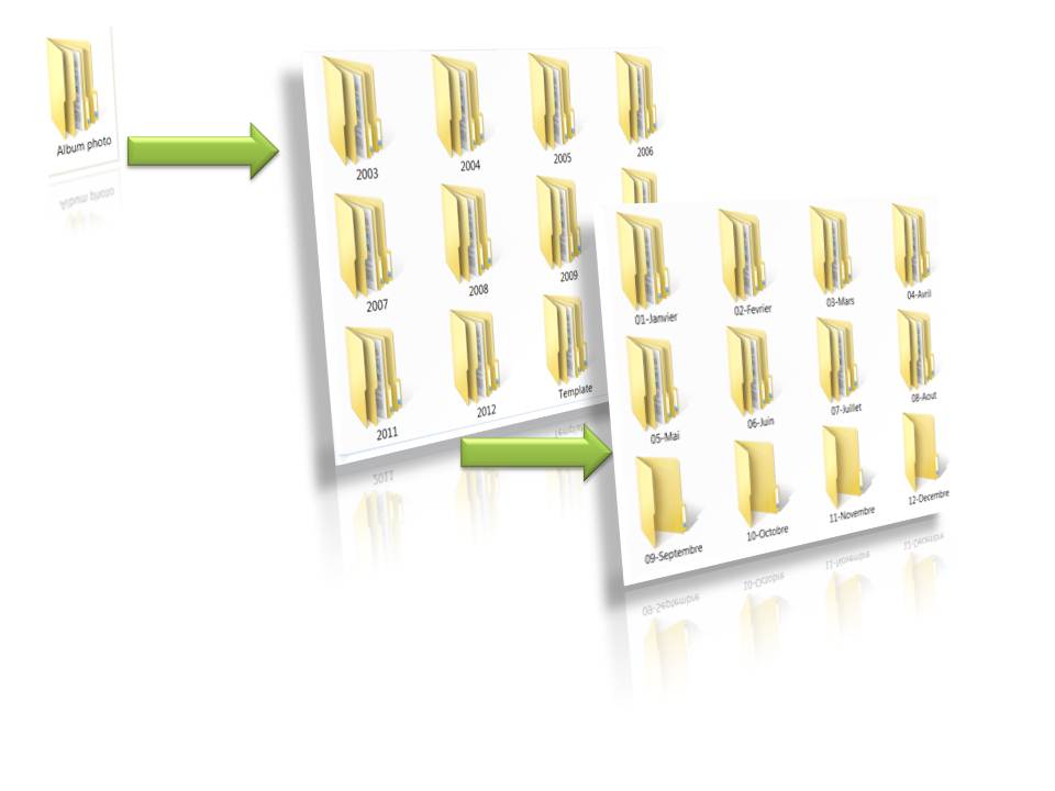 Conseil : Préfixez les répertoires des mois, par le numéro du mois, cela permettra de les trier dans l'ordre